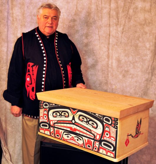 Ken Decker, a local Tsimshian artist, designed a stork image for the boxes. That design was made available to similar programs nationwide, and Decker later was commissioned by the distributor to create a cedar bentwood box based on that design. The distributor gave the box to the PeaceHealth Foundation late last year.