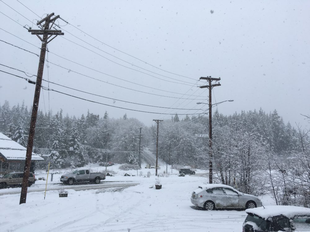 Snow continues to fall in Ketchikan Tuesday morning,. The forecast calls for it to switch to rain by afternoon. (Photo by Leila Kheiry)