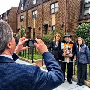 It is not. It’s now a block of 1970’s era housing. Rubin wasn’t disappointed. He and his sister walked past the security fence and took a spot on the small lawn. They unwrapped the bronze replica treaty.