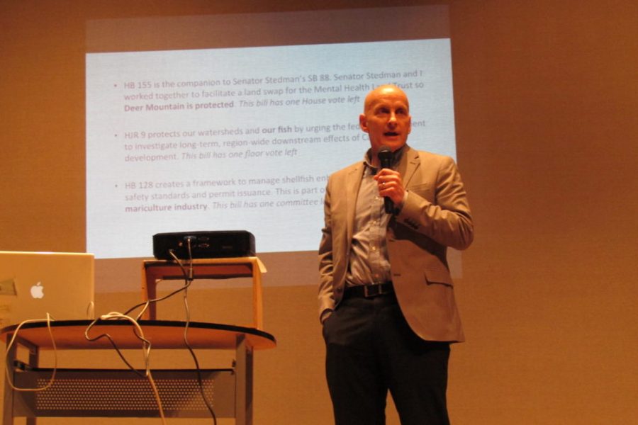 Representative Dan Ortizheld a town hall meeting in Ketchikan Thursday night. Ortiz shared the details of a fiscal plan to address declining State revenue, and gathered input from constituents.