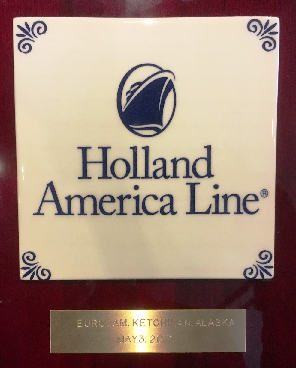 In return, Captain Scott presented a Dutch blue-and-white ceramic tile with the ship’s name on it for Ketchikan. It will go in the Ketchikan Visitors Bureau building on the downtown dock, joining other ship plaques from previous inaugural visits.