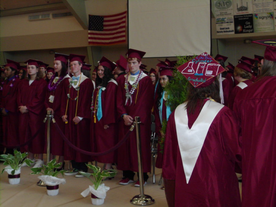 Walking double-file, graduating seniors came into the Clarke Cochrane Gymnasium, while the Kayhi Wind Ensemble played.