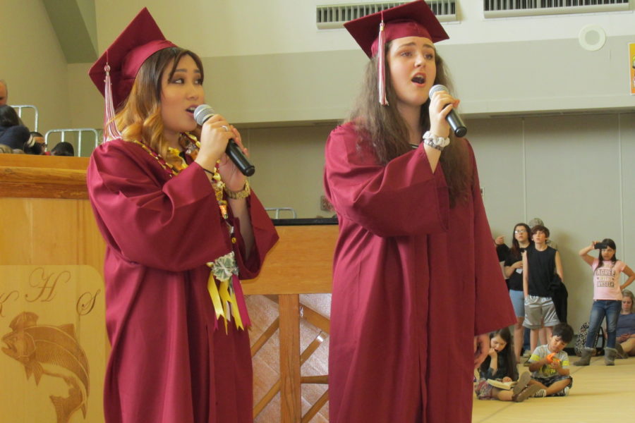 Seniors Kay Fazakerley and Arra Seludo sang “For Just a Little While.”
