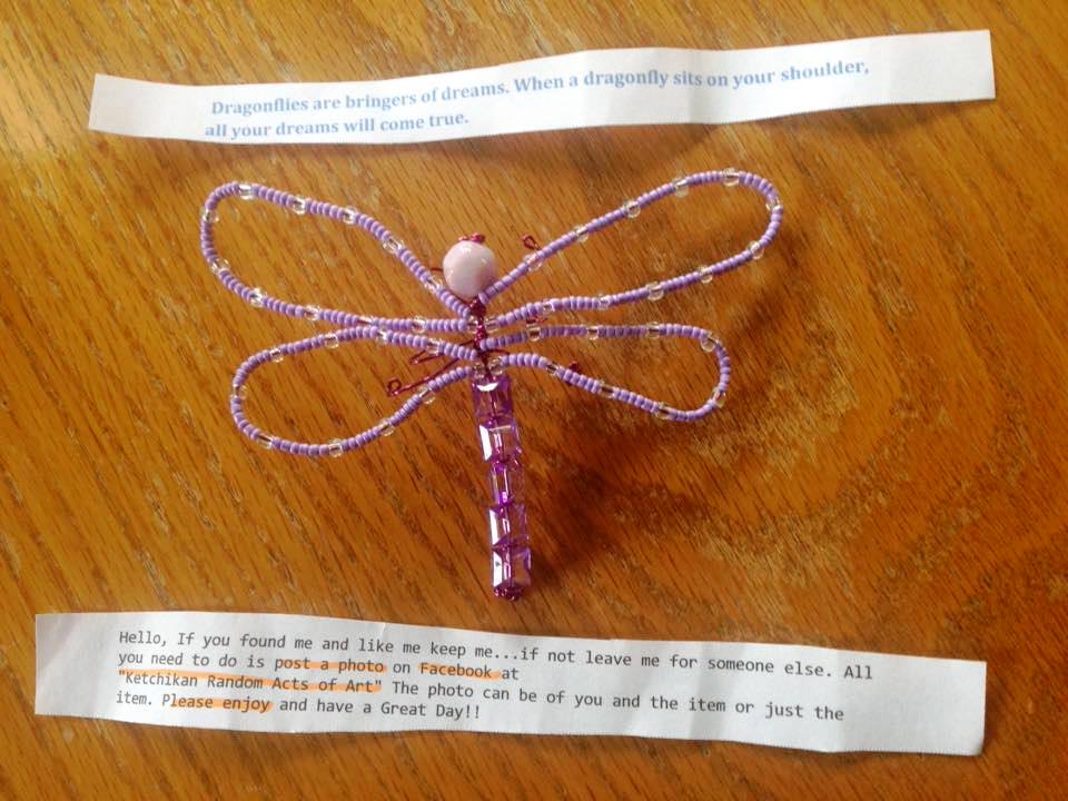 “Well, especially when it’s raining and it’s gray, it was pretty sweet,” she said. “And I just think it’s such a cool thing to see in Ketchikan that people do stuff like this. It just totally brightens your day, to have this little, as you say, random act of art, show up in your hand, and I just think it’s really, really cool.”