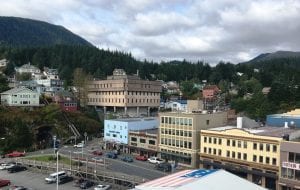 A view of downtown Ketchikan, seen from the cruise ship Vaandam. (KRBD photo by Leila Kheiry)