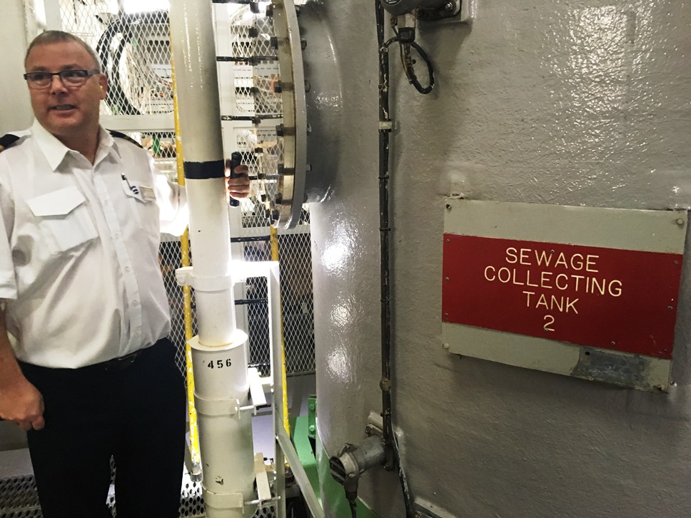 Alexies Varon is senior watchkeeper and runs the Zaandam’s wastewater system. (KRBD photo by Leila Kheiry)