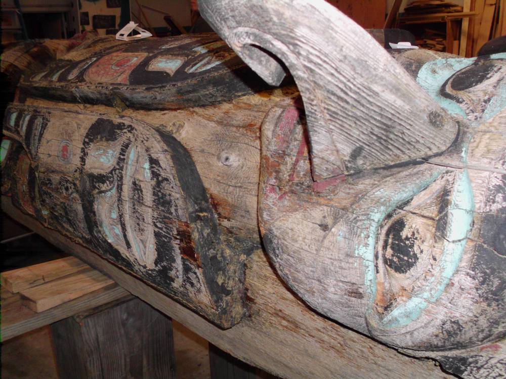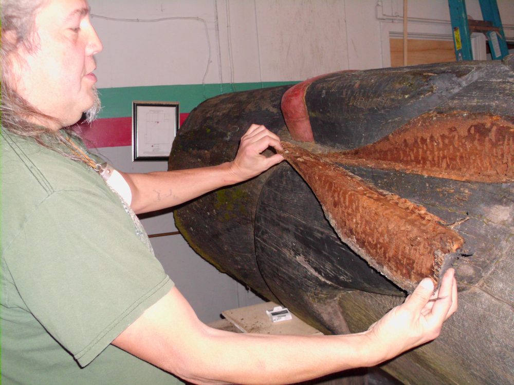 Joseph has more than 20 years’ experience with totem pole restoration. He says he began with an assessment of the overall condition of the pole.