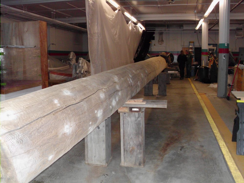 The 55-foot pole is a replica carved by Israel Shotridge and raised in 1989. It is now at the old fire hall on Main Street where Tommy Joseph is undertaking the restoration process.