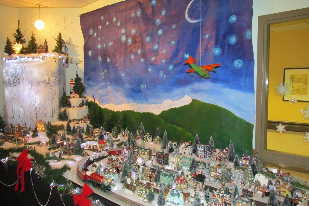 The Ketchikan Pioneers Home Christmas village. All items were donated (KRBD staff photo by Maria Dudzak).