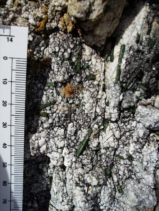 An ore sample from Niblack mine exploration. Bills before Congress would speed construction of a road linking it to the Prince of Wales Island system. (Photo courtesy Healtherdale Resources.)