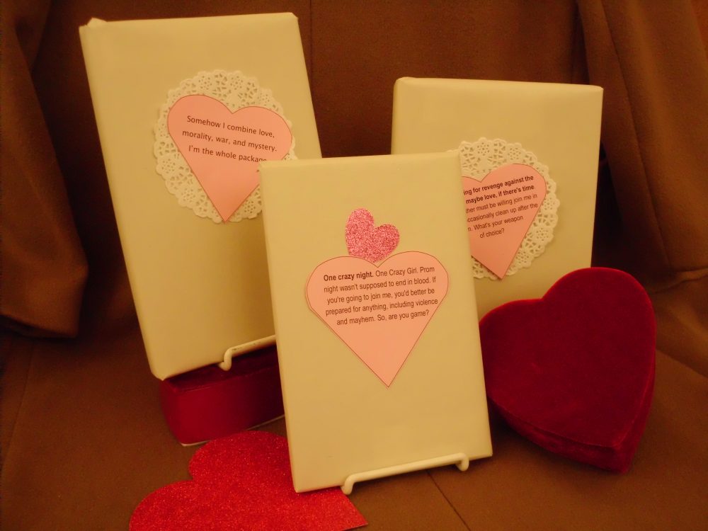 Books, wrapped in non-descript brown paper will be spread out on tables in the large meeting room that evening. The only clue when making a selection is a short teaser written on a heart attached to the front of the book.