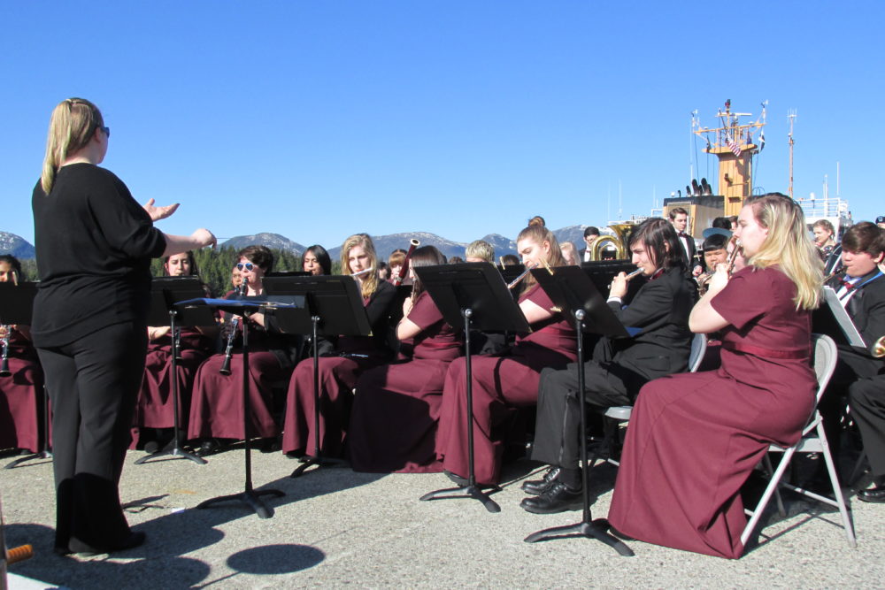 The Ketchikan High School Band performs at the commissioning ceremony for the Coast Guard cutter John McCormick – April 12, 2017).