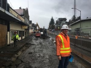 Luiken spent some time during his stop in Ketchikan visiting road construction work on Stedman Street, which started a few weeks ago. That project begins with sidewalk improvements, and will be followed by paving on the road itself. It’s the first phase of a complete re-do of Front, Mill and Stedman streets through Ketchikan’s downtown corridor.