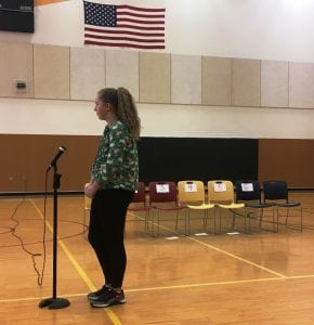 Grace Parrott was the last speller standing during Ketchikan’s spelling bee in February. She won with the word Haversack. (KRBD file photo by Leila Kheiry)