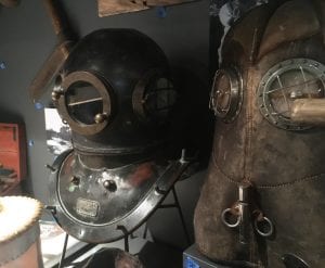 Diving helmets are part of a display case in the Tongass Historical Museum’s new permanent exhibit