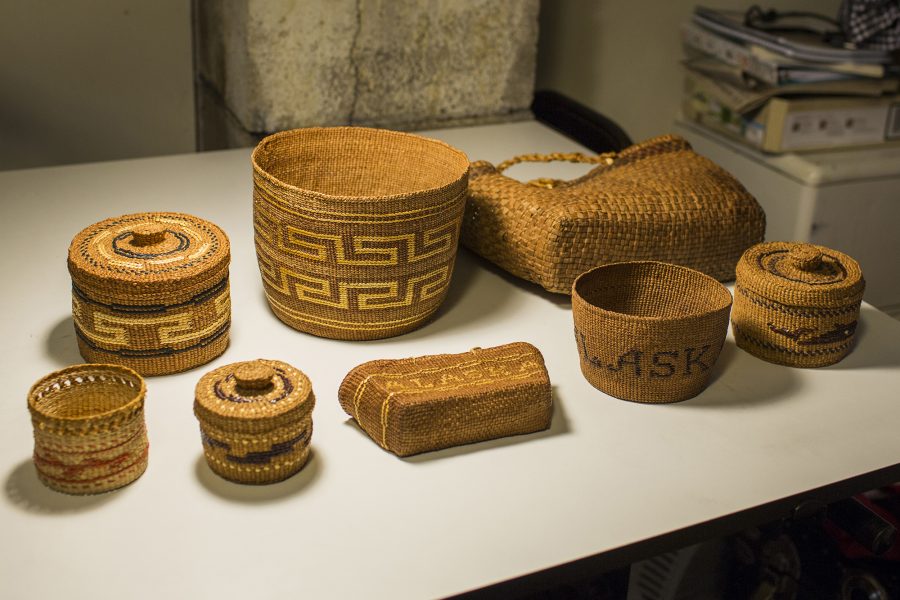Annette Island Tsimshian baskets from The Haayk Foundation collection. (Photo by Wayde Carroll)