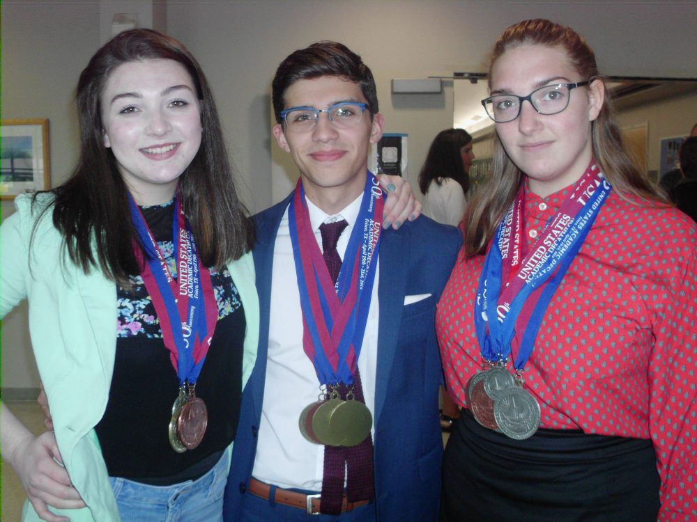 Three of Kayhi’s national AcDc champions. From left Emme Andersen, Max Varela and Lydia Sumrall (KRBD staff photo by Maria Dudzak).