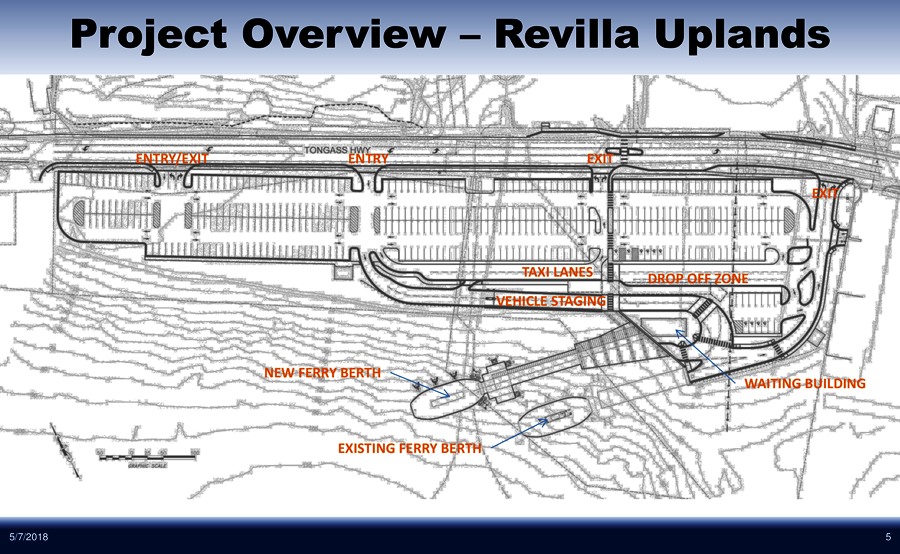 Plans to reconfigure the Revilla-side airport ferry terminal and parking lot will be presented Monday during a special meeting of the Ketchikan Gateway Borough Assembly.