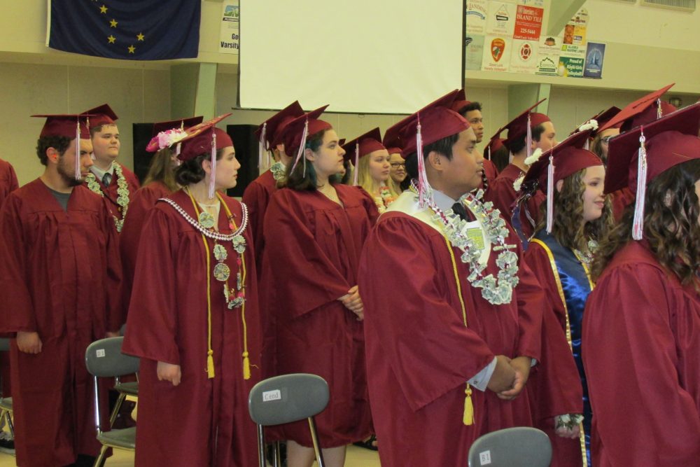 One hundred and thirty-five Ketchikan High School seniors became alumni on Sunday during a standing-room-only ceremony.