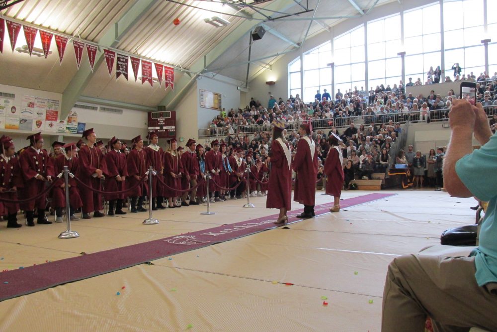 As the Kayhi Wind Ensemble played “Fanfare and Processional” by Edward Elgar, pairs of students, arm in arm, entered the gym. Principal Bob Marshall welcomed guests and introduced speakers.