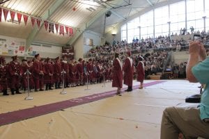 There were several standing ovations during the ceremony, including those for the jazz choir, the championship Kayhi Academic Decathlon team, Myra Zelensky, and vice-principal Mike Rath, who is retiring at the end of this school year. The crowd also rose as the class was presented before heading down the aisle to receive their diplomas.