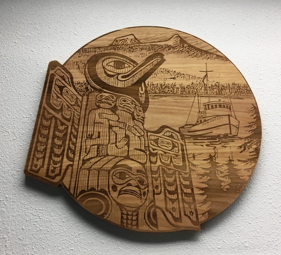 The Ketchikan School District seal is on display at the superintendent’s office. (KRBD file photo by Leila Kheiry)