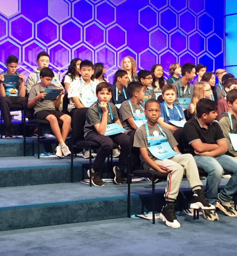 Grace Parrott (back row) is on stage getting ready to spell in the Scripps National Spelling Bee in late May. (Photo courtesy Katie Jo Parrott)