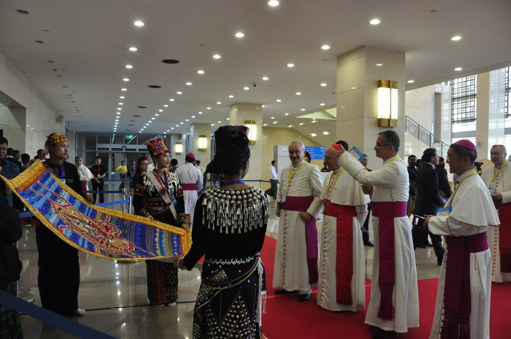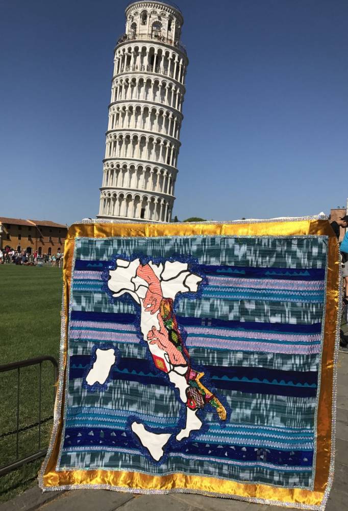 In addition to creating Peace flags, participants can use traditional Burmese textiles to help fill in an Alaska silhouette within a large Burmese map image. Vasile is still working to visit all 50 states. He says the pieces will be joined together.