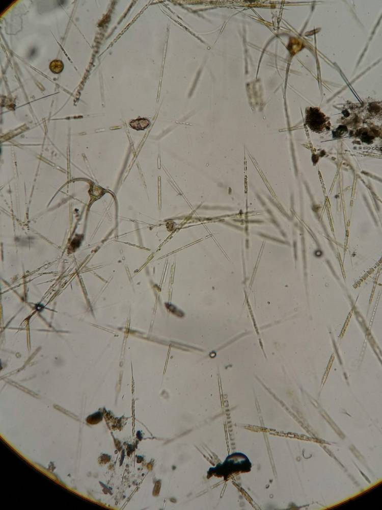 Sample of ocean water showing beneficial microscopic phytoplankton and animals (photo courtesy of Barbara Morgan).
