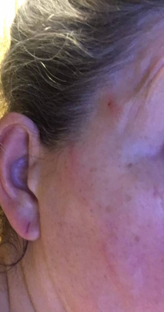Deborah Hayden three days after her bear encounter. Scratches and a wound are slightly visible on the right side of her face (KRBD staff photo by Leila Kheiry).