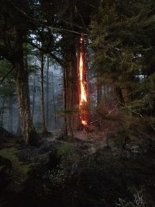 This U.S. Forest Service photo shows a tree burning in the Moser Bay area. The approximately 2-acre fire is now 100-percent contained.