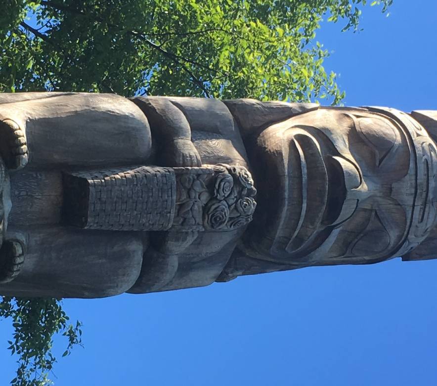 “Somebody had put flowers on the totem pole when the healing heart was being carved,” she said “Real roses. So, it’s a traditional thing for the totem pole, maybe in memory of somebody that you’ve lost or that you want to remember.”