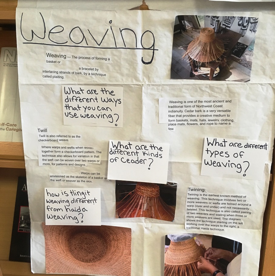 Those students, all Alaska Native or Native American, made posters that are hanging on the walls of the UAS Ketchikan Campus Library. Each poster represents Native culture, in any way the student chose.