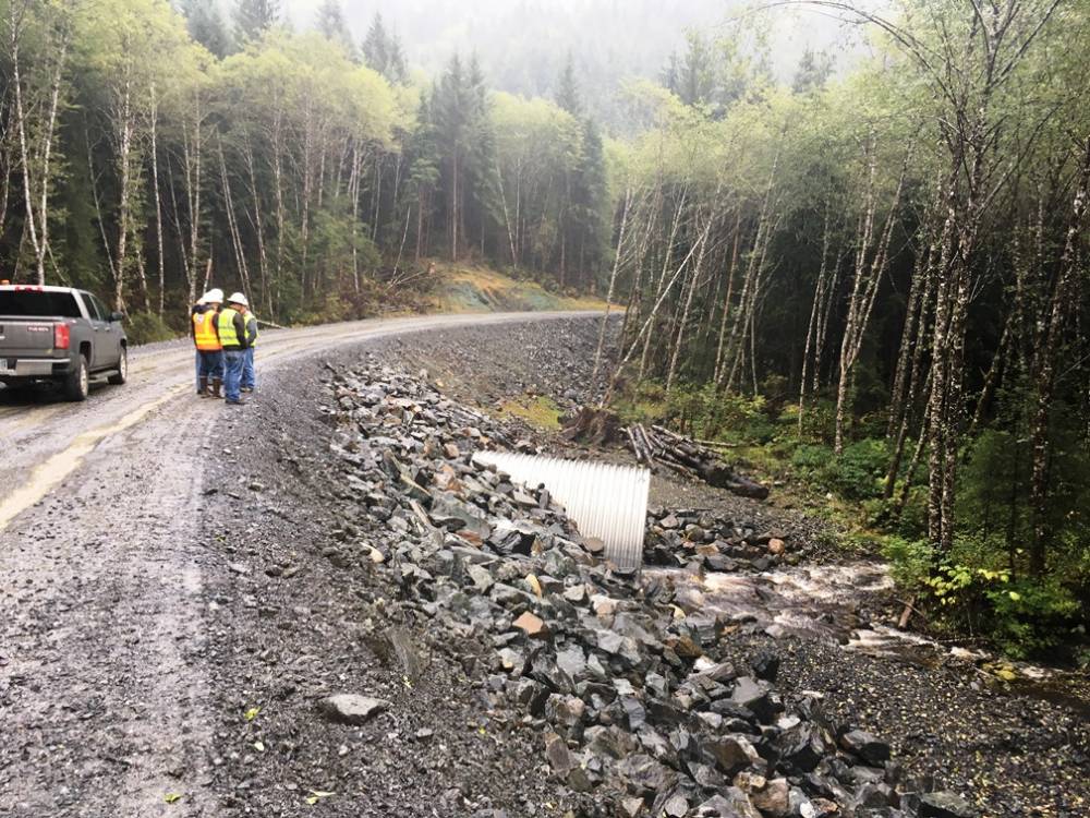 The current contractor is K&E Alaska out of Sitka. They were able to start work this spring, but were a little late for what Winter calls the “fish window.” There are quite a few fish streams along the route, he said, and work is allowed on those streams in June and July. That’s it.