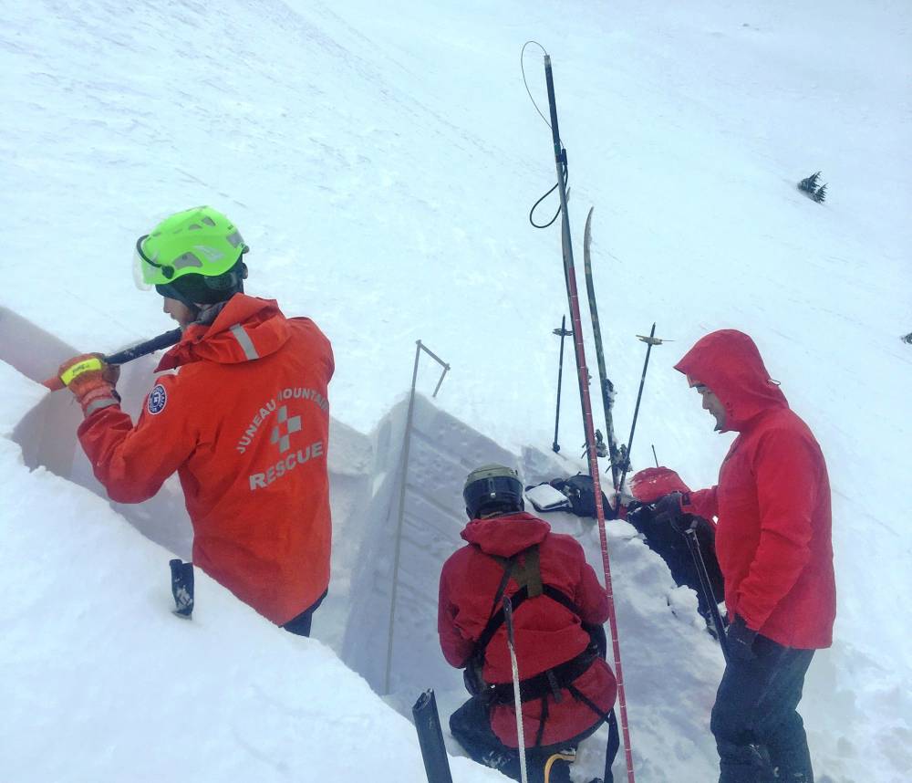 Ketchikan Volunteer Rescue Squad members test snow stability last year. The group received a grant in 2018 for avalanche training. (Photo courtesy KVRS)