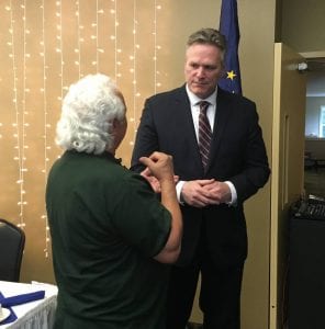 The governor’s presentation took about half an hour. After that, he took questions from the audience. Kim Hodne, who volunteered for Dunleavy’s campaign in Ketchikan, said that Dunleavy’s proposed budget is dividing the state into winners and losers: with huge cuts from the ferry system and education.