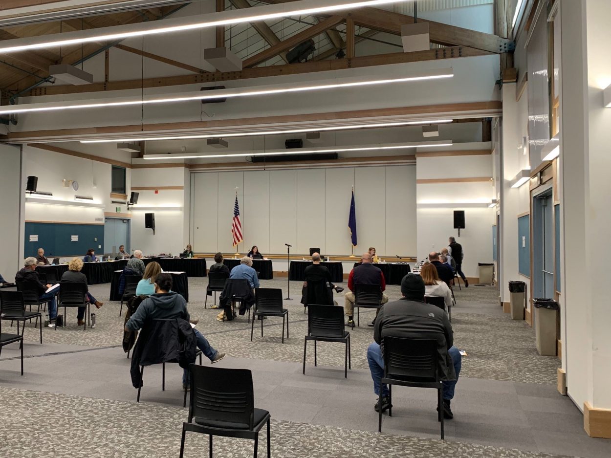 Thursday’s meeting was held in the Ted Ferry Civic Center to allow at least six feet between council members and members of the public. (Eric Stone/KRBD)