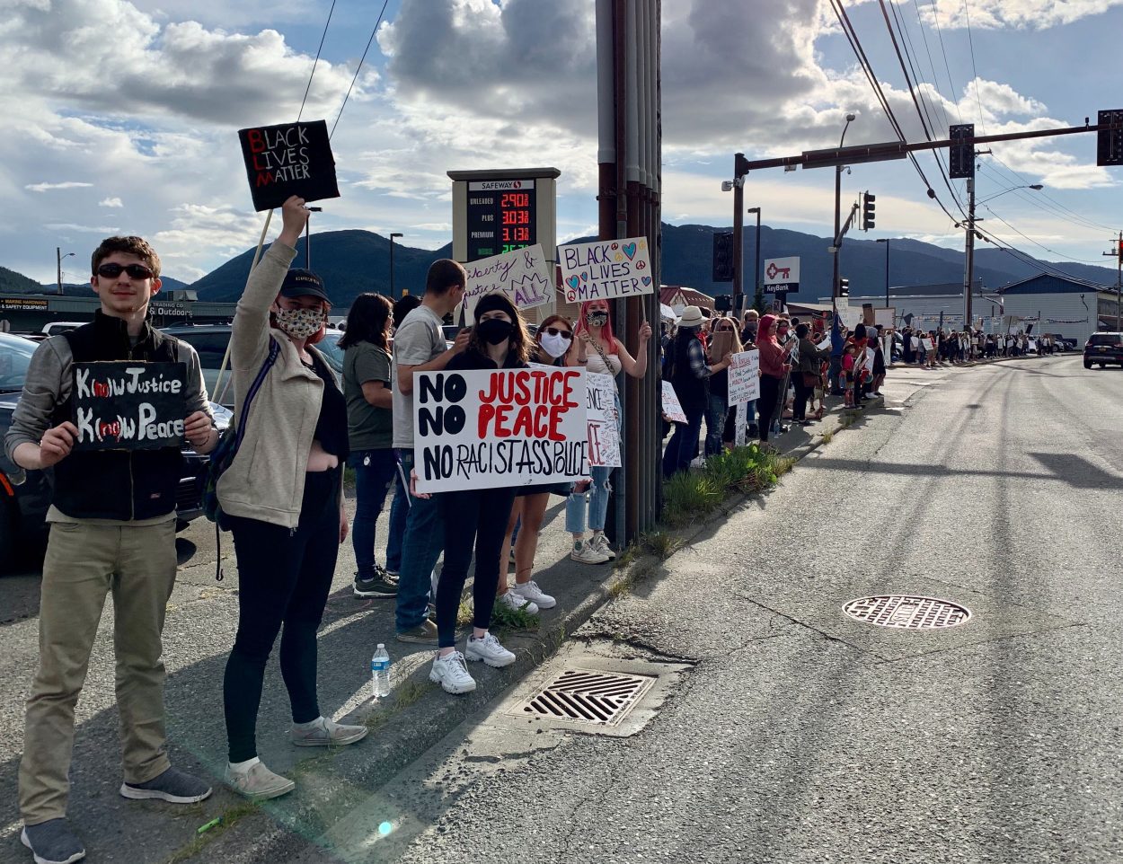 Some 400 protesters lined Tongass Avenue to protest racial injustice Saturday. (Eric Stone/KRBD)