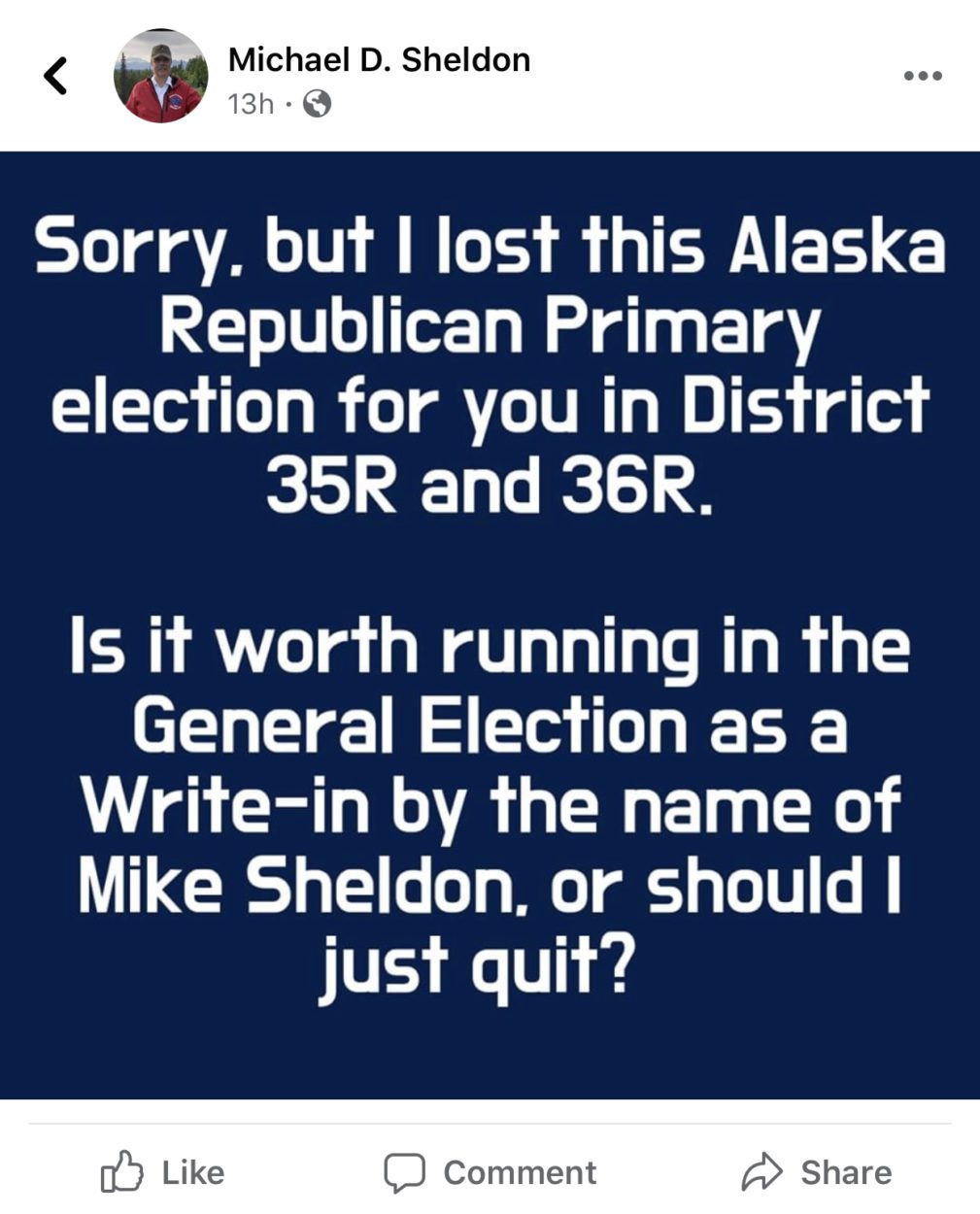 Incumbent Sitka Republican Sen. Bert Stedman leads his sole challenger Michael Sheldon by about 600 votes. Sheldon conceded Wednesday morning on Facebook that he’d lost the primary, but suggested he might mount a write-in campaign in November as Stedman will be unopposed.