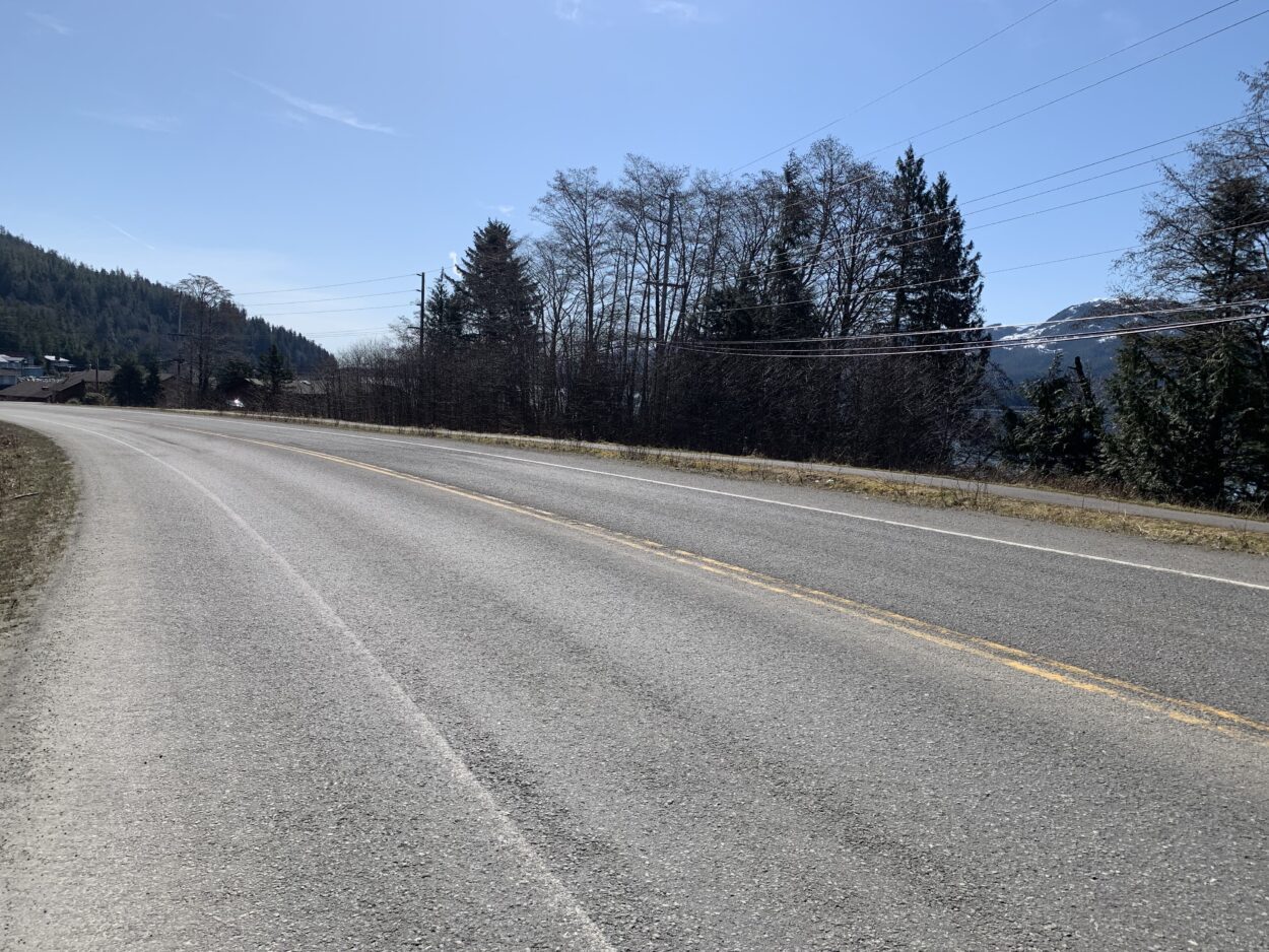 A section of South Tongass Highway near the location where the swastika was painted is shown on Wednesday. (Eric Stone/KRBD)