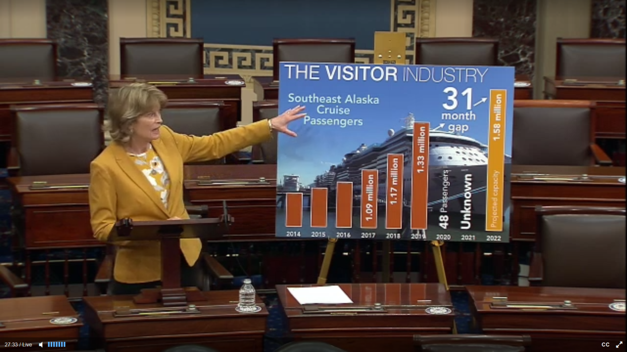 Alaska Republican Sen. Lisa Murkowski asked the Senate Thursday to fast-track a short-term waiver of the law for voyages between Washington and Alaska. She said hope for a 2021 season was fading in Alaska.