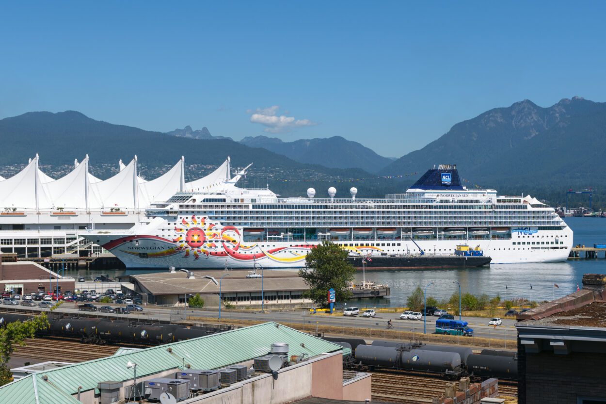 The Norwegian Sun is shown docked at Vancouver’s cruise terminal in 2015. (Creative Commons photo by Xicotencatl)