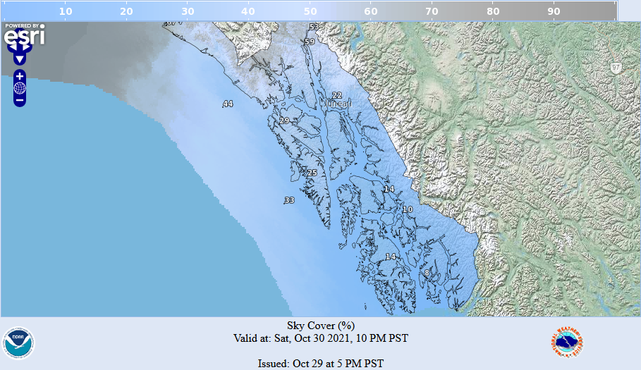 Skies are forecast to be clear across Southeast Alaska Sunday evening. (National Weather Service)