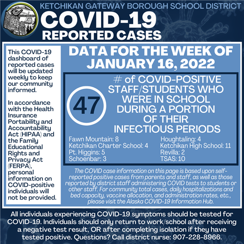 Johnson says with COVID-19 cases at all-time highs in Ketchikan, the district does not plan to change its pandemic mitigation measures in the near future. She’s asking the community to hang in there as the omicron surge continues.