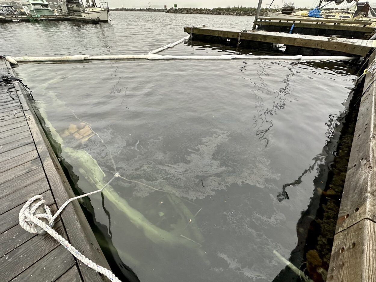 Crews placed containment booms around the sunken vessels to prevent leaking fuel from polluting the harbor. Berg says the owners plan to raise and remove the boats in the coming days.