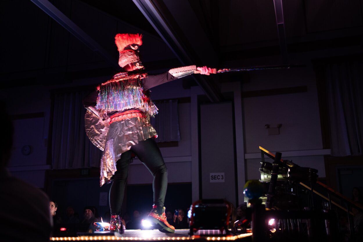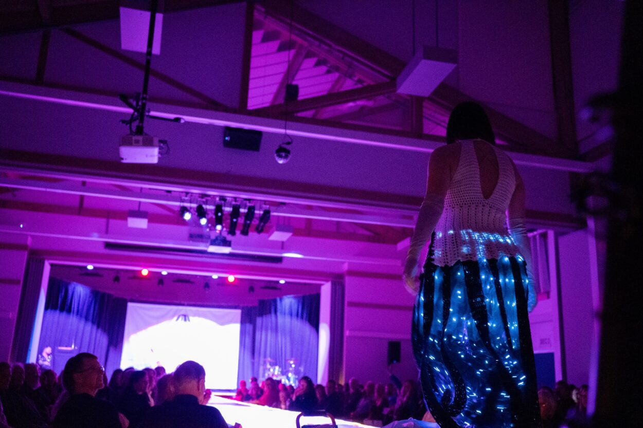 It’s the last night of Wearable Arts and the Ted Ferry Civic Center is absolutely packed. People grab drinks, chat, and take their seats around a long runway jutting out from the stage like a huge “T”. The theme of the night is “The Art of Artifice.” The Sheets, a local band, kick things off.