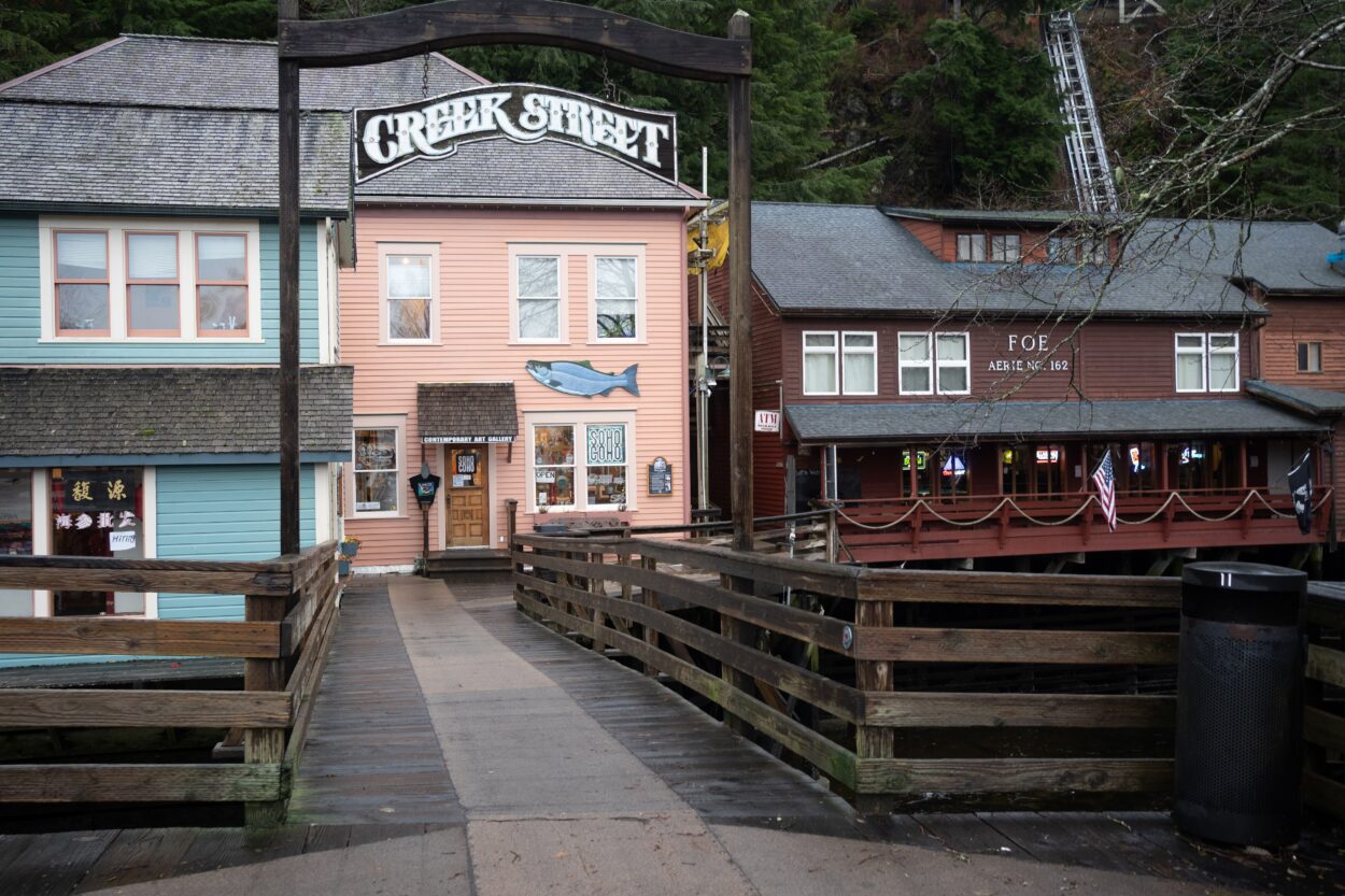 Creek Street is a main thoroughfare for tourism in Ketchikan. It also runs along Ketchikan Creek, a spawning salmon stream, and often attracts animal activity in the summer months.