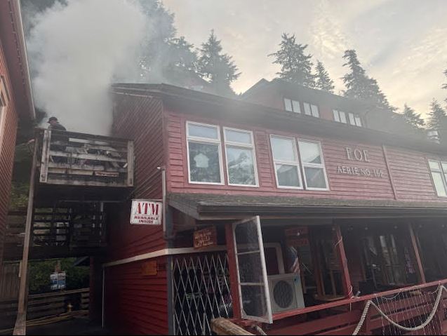 A 911 call about the fire came in just before 7 a.m. Friday. The caller said they could see fire and smoke in a window. All three fire departments in Ketchikan responded with five fire trucks and two ambulances. There were no reported injuries. The building was the local Eagles Lodge, a fraternal organization. It sits on stilts above the water on historic Creek Street, which is connected by boardwalks.