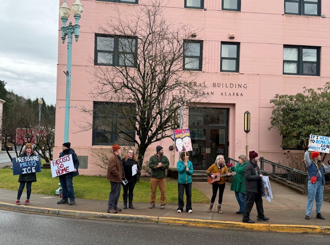 Around 50 people rallied in downtown Ketchikan on Saturday to protest the occupation of ICE or Immigration and Customs Enforcement. It was one of many protests across the country since Minneapolis resident Renee Good was shot and killed by an ICE agent in early January.