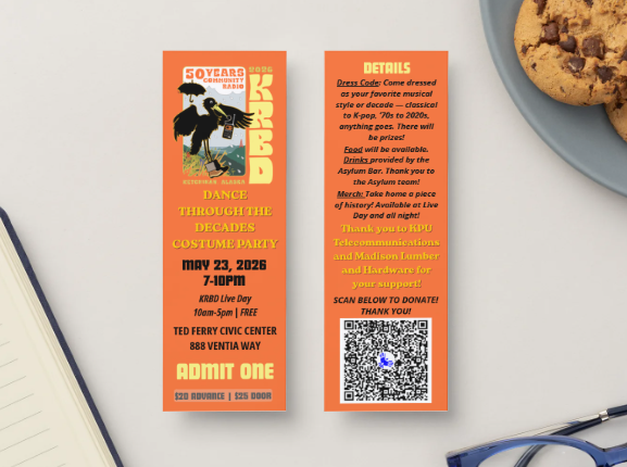 This just in! The first 200 people to buy Dance through the Decades tickets will receive a commemorative “50 years of KRBD” ticket!
